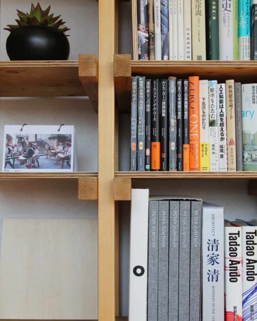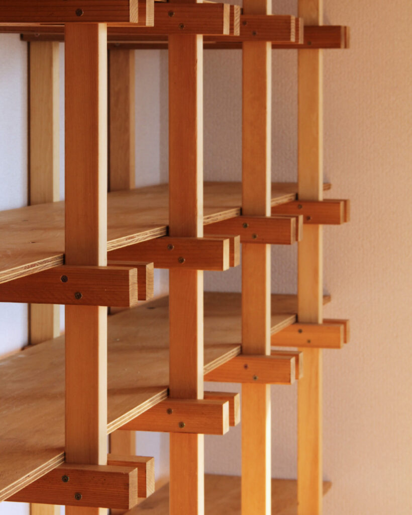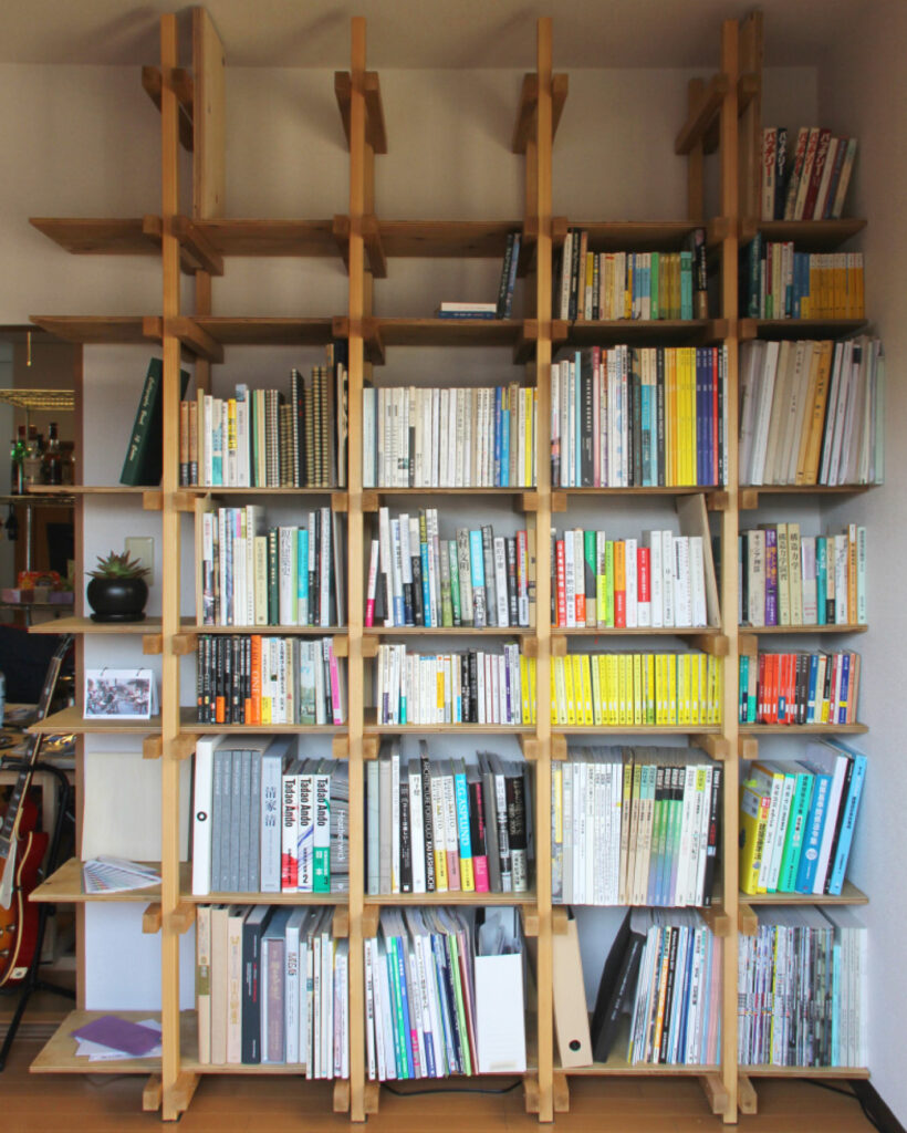 「大きな本棚が欲しい、けれども簡単に解体ができる本棚が欲しい」という思いで設計した。