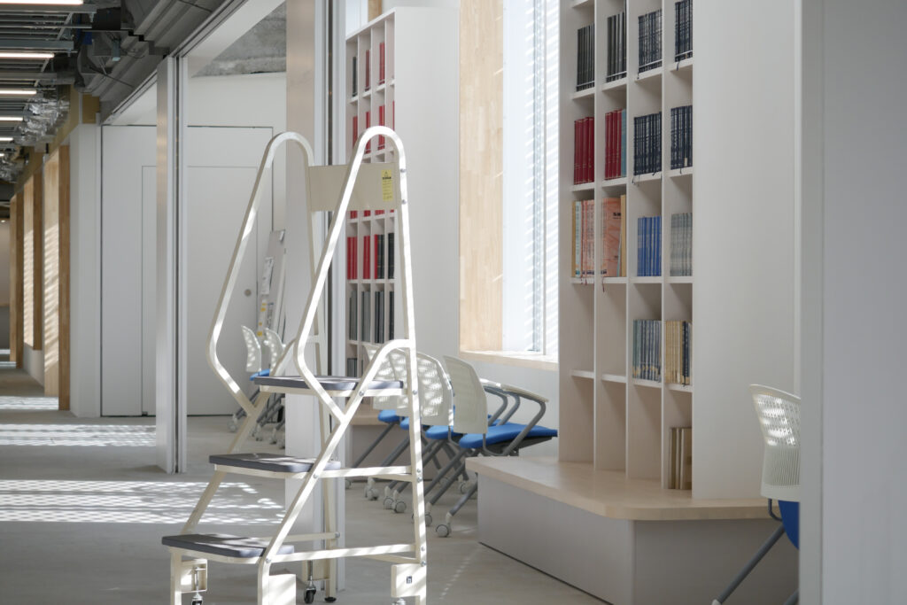 We designed and produced bookshelves for the library space on the second floor of West Building 6, which was designed by Taishin Shiozaki Laboratory of Tokyo Institute of Technology (some parts were produced by Ishikawa Seisakusho).