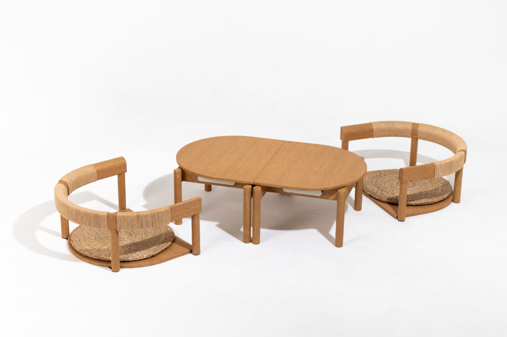 works_2024_02 投稿者: 中村ぽん2024年11月25日2025年12月9日未分類 D-CHAIR¥275,000(税込) こちらの商品は受注生産となります。ご購入・お問い合わせをご希望の際は、お気軽にご連絡ください。 こどもとの暮らしの中で起こる様々な出来事に、柔軟に対応できる椅子。 1脚の椅子は座椅子とローテーブルに分解できるという気づきが、そのまま形になっている。 平面的に“D”の形のこの椅子は、2台を向かい合わせて小判型のローテーブルとして使うこともできる。 椅子/ローテーブル+座椅子の2通りの使い方があり、2脚組み合わせても使える“Double”な家具となっている。 JID AWARD 2025のプロダクト部門にて金賞を受賞。 設計:正田真郷 製作:ゴーストファニチャー サイズ:W63×D49×H54cm(ローテーブルH29cm、座椅子H27cm) D-CHAIR ¥275,000 (tax included) This item is made to order. Please feel free to contact us for purchases or inquiries. A chair designed to flexibly adapt to the various events that occur in daily life with children. The insight that a single chair could be separated into a floor cushion and a low table became the inspiration for its form. This chair, shaped like a flat “D,” can also be used as an oval-shaped low table when two chairs are placed facing each other. It offers two uses: chair/low table and floor cushion, making it a “Double” piece of furniture that can also be used when two chairs are combined. Winner of the Gold Award in the Product category at the JID AWARD 2025. Design: Masato Shoda Manufacturing: GHOST FURNITURE Size: W63 × D49 × H54cm (Low Table H29cm, Floor Cushion H27cm)